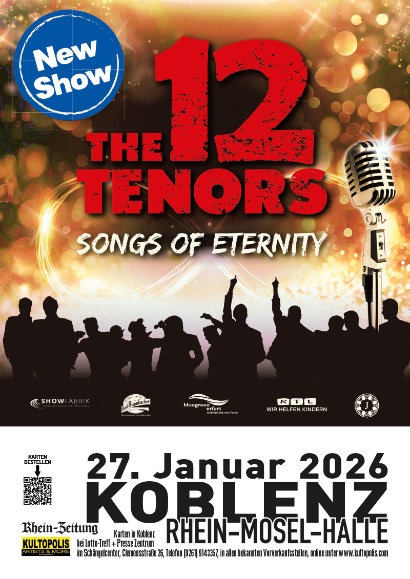 Mit dem Motto SONGS OF ETERNITY entführen die 12 Ausnahmesänger das Publikum in eine Welt, in der Musik zu einem unsterblichen Begleiter wird. Die außergewöhnliche Show feiert ikonische Lieder, die über Generationen hinweg die Herzen der Menschen berührt haben. Von Klassikern der Popgeschichte über unvergessliche Balladen bis hin zu ergreifenden Hymnen der letzten Jahrzehnte – SONGS OF ETERNITY präsentiert eine sorgfältige Auswahl an Liedern, die mit ihrer Schönheit und Tiefe einen bleibenden Eindruck hinterlassen.