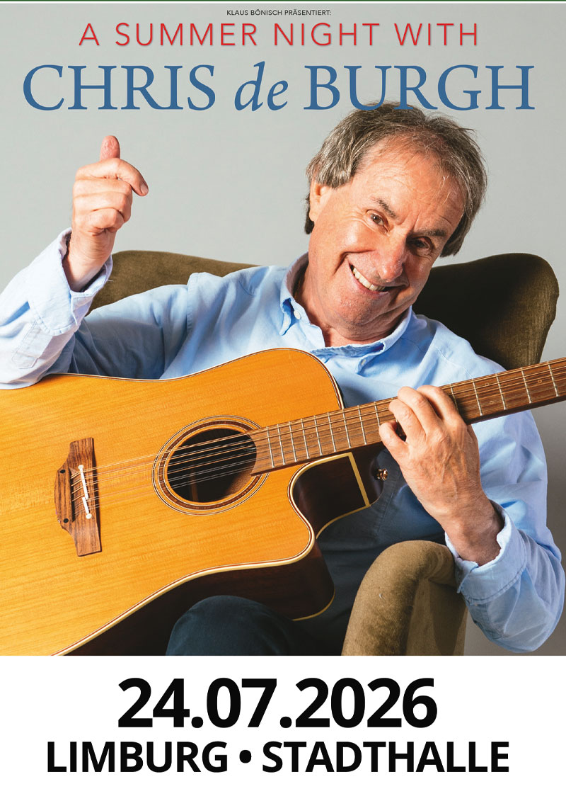 Seine Gastspielreisen im Alleingang sind dermaßen erfolgreich, dass sie im Sommer 2026 in eine erneute Verlängerung gehen! Die Nachfrage nach Solo-Konzerten von Chris de Burgh ist ungebrochen – diesmal stehen sie unter dem Titel „A Summer Night with Chris de Burgh“. Das Publikum ist begeistert, die Kritik voll des Lobes darüber, wie der Sänger/Gitarrist/Pianist binnen mehr als zwei Stunden anhand von rund 30 Liedern einen musikalischen Querschnitt seiner Karriere präsentiert. Das wird auch der Fall sein bei den dreizehn Auftritten in Deutschland zwischen dem 12. Juli und 1. August. Karten gibt es im Vorverkauf. „Was seine Konzerte so besonders macht, ist ihre Reduktion aufs Wesentliche“, stand im Stadtmagazin Moritz …