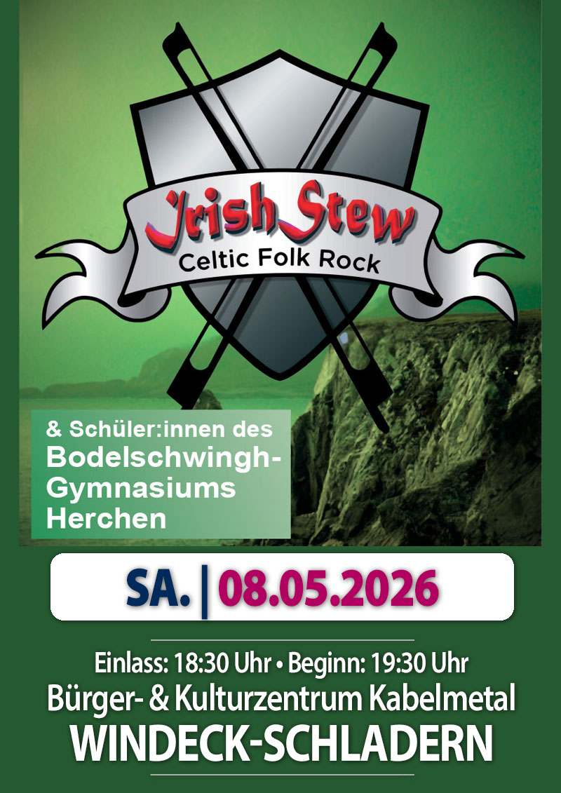 Irish Stew – das ist die Neuinterpretation der irischen und schottischen Folkmusik. Mit rockigen Rhythmen, einfühlsamen Balladen, atemberaubenden Instrumentals und unbändiger Spielfreude begeistert die Band ihr Publikum. Das eine oder andere irische Trinklied animiert dann wirklich jeden und jede zum Tanzen und Mitsingen. Ein Abend mit Irish Stew ist wie das gleichnamige Nationalgericht: erdig, ehrlich und kraftvoll.