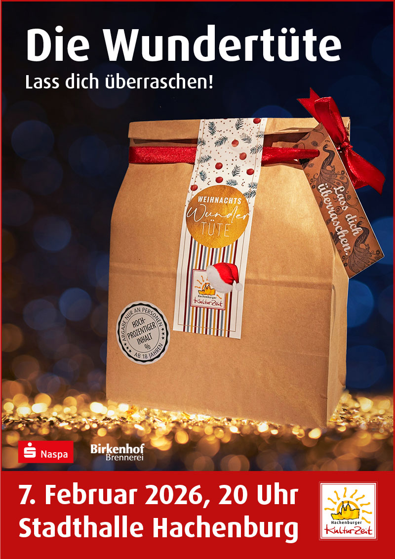 Wenn Sie die Wundertüte online über www.ticket-regional.de kaufen, erhalten Sie die Tüte am Abend der Veranstaltung.