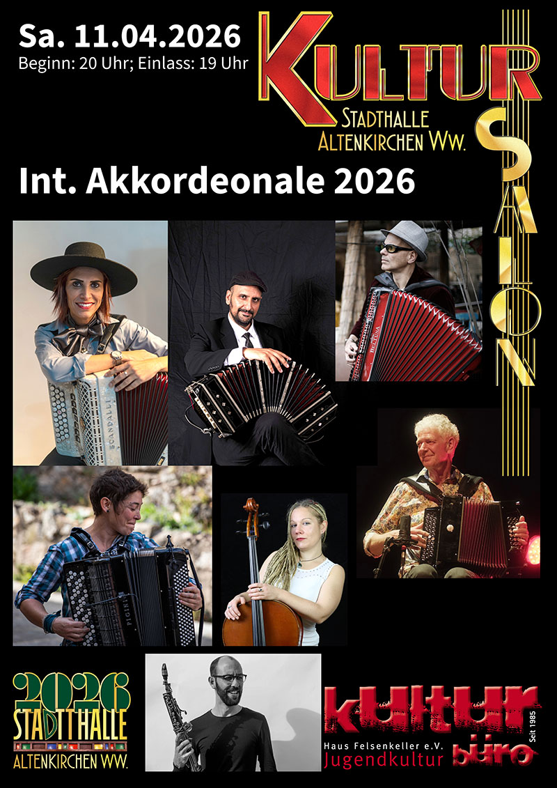 Zur Geburtsstunde 2009 war die Akkordeonale noch damit beschäftigt, das Akkordeon aus seinem Nischendasein herauszuzerren und ins breite Bühnenlicht zu stellen. Schnell ist das Festival zu einem außergewöhnlichen Erlebnis quer durch sämtliche Kulturen und Stilarten geworden, immer innovativ, berauschend und erfrischend anders. Eine einzige Liebeserklärung an das – wie Akkordeonale-Gründer Servais Haanen sagt – schönste Instrument der Welt …