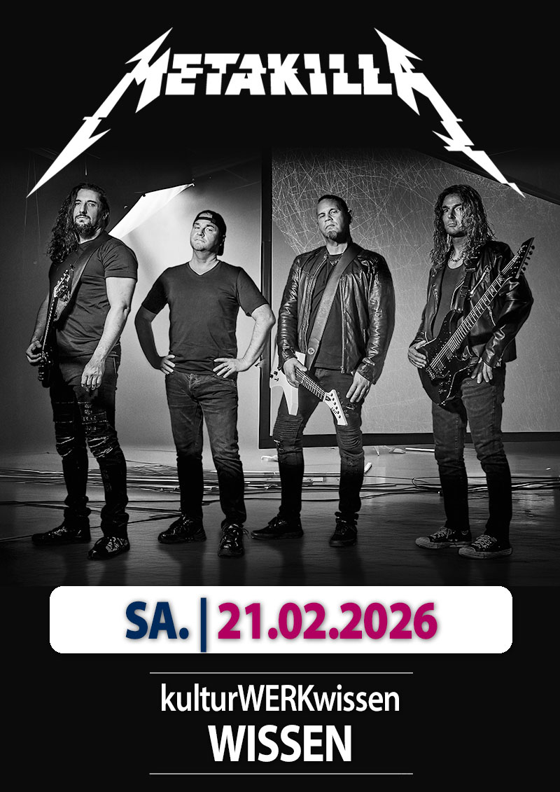 Die große Leidenschaft für Metallica ist einer der Hauptgründe, die METAKILLA seit 2005 als authentischste Metallica-Tribute-Band Deutschlands über die Jahre so erfolgreich macht. Mit bereits über 200 hochkarätigen Shows hat sich die Band den festen Platz in der professionellen Tribute-Szene erspielt …