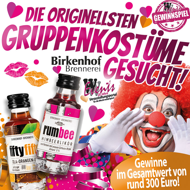 Auch in diesem Jahr verlosen die BIRKENHOF-Brennerei und WW-Events tolle Preise für kreative Gruppen-Kostüme: