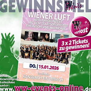 1. In Kooperation mit Veranstaltern sowie Anzeigenkunden verlost WW-Events regelmäßig Eintrittskarten, Gutscheine und Sachpreise. Die Teilnahme ist kostenlos und richtet sich ausschließlich nach den nachfolgenden Teilnahmebedingungen.